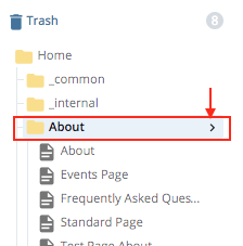 - In the navigation panel, hover over a desired sub-folder and click “>” to display its content on the site content panel.